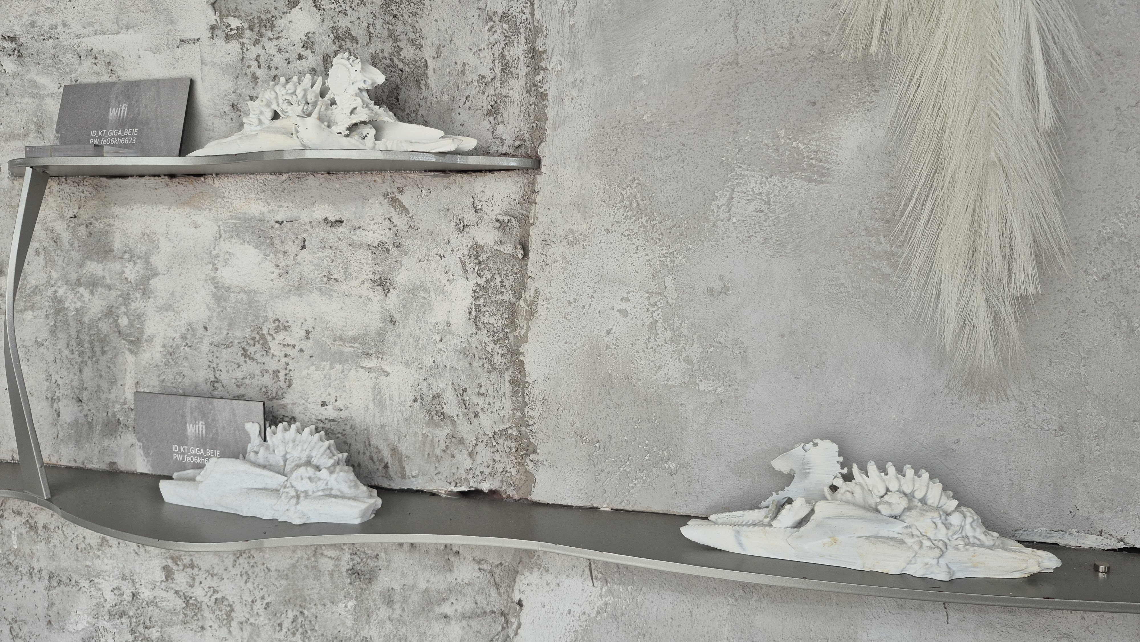 다른 따뜻한 감성 카페들과는 다르게, 안지는 연한 회색과 거친 벽면 표면으로 시크하면서도 세련된 분위기를 연출해요. 테이블이나 의자도 평범하지 않고 독특한 조형물 같아서, 앉는 곳마다 포토존이 된답니다. 첨부해주신 사진처럼 예쁜 디저트를 올리면, 이 시크한 배경 덕분에 사진이 훨씬 분위기 있게 나와요!
