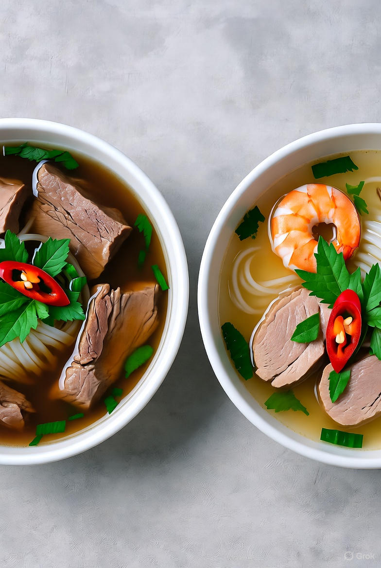 꾸이 띠어우는 베트남의 쌀국수 '퍼'와 비슷하게 보일 수 있지만, 육수와 면에서 차이가 있어요. 육수는 소뼈 대신 돼지뼈나 닭뼈를 푹 고아내어 더 맑고 순한 맛이 나며, 면은 더 가늘고 부드러운 쌀국수 면을 사용합니다. 푸짐한 고명을 원하는 대로 조합해 먹는 재미도 빼놓을 수 없죠! 😉
