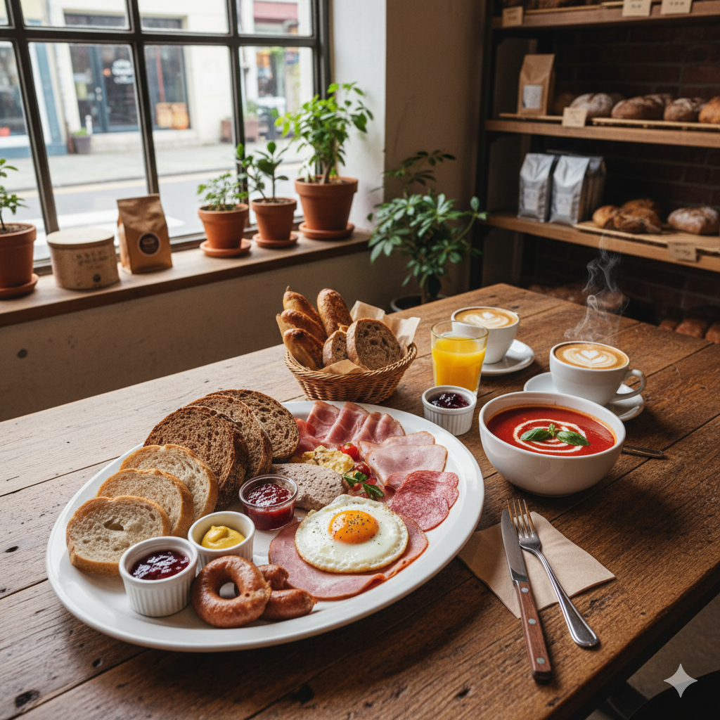 - 흑미 치아바타 번 (안토시아닌과 혈관 건강): 일반 밀가루 번 대신 사용된 흑미는 항산화 성분인 안토시아닌을 다량 함유하고 있습니다. 이 성분은 블루베리나 검은콩에 많다고 알려져 있죠! 흑미는 혈관 내 콜레스테롤을 억제하고 심혈관 질환, 치매 예방에 효과적이며, 식이섬유가 많아 혈당 조절에도 유리합니다. (치아바타는 섬유질과 칼슘을 포함하나, 탄수화물 비중은 높으니 적당히 즐겨주세요.)