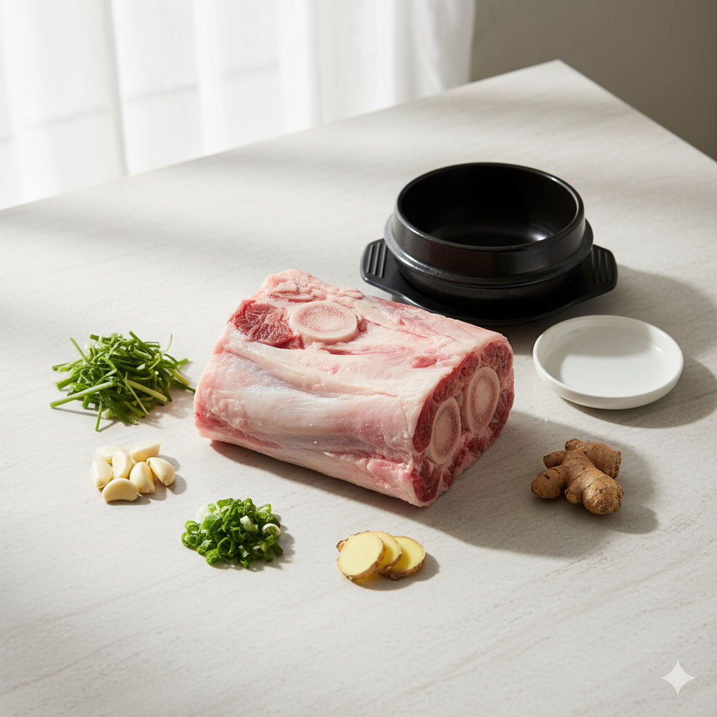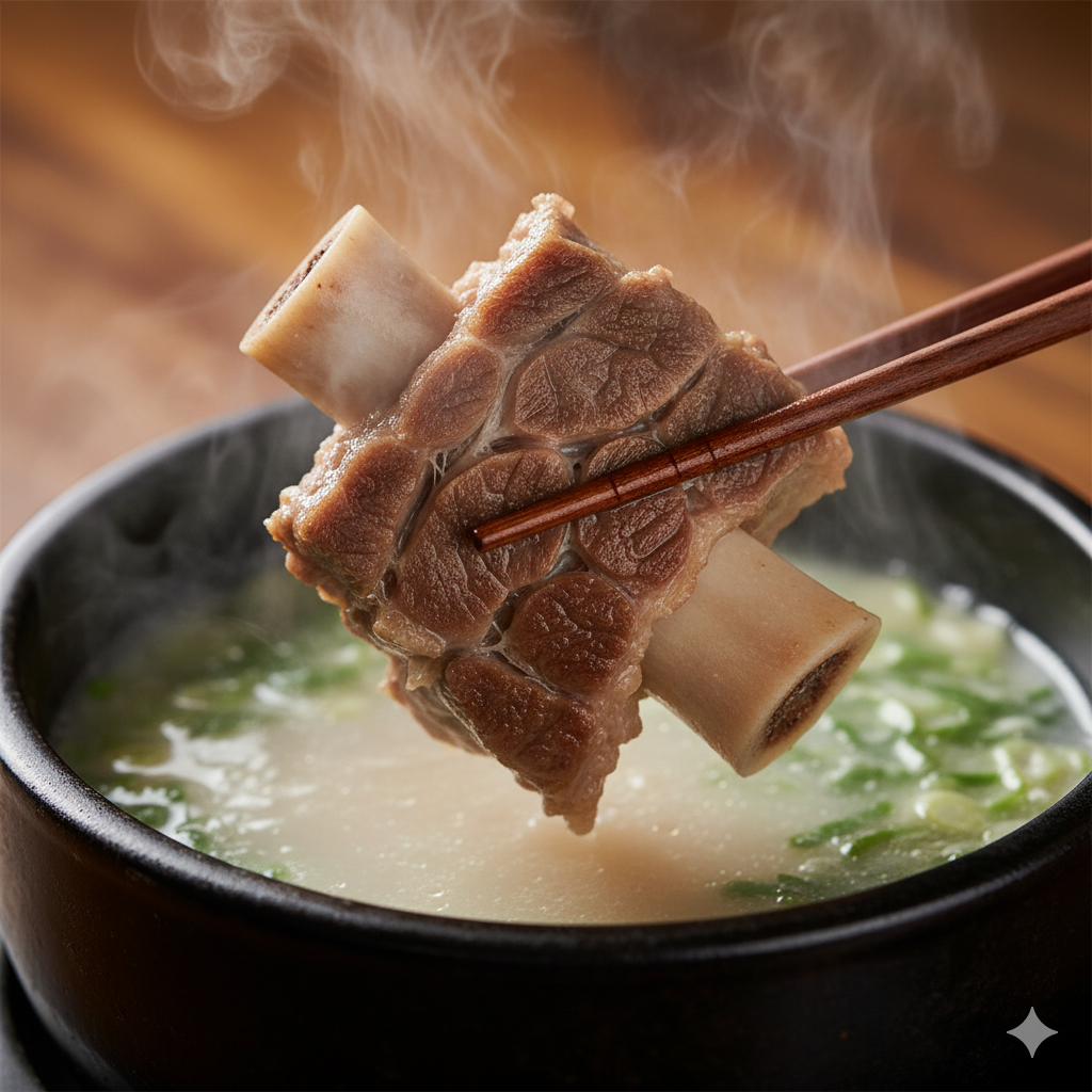 - 꼼꼼한 전처리: 곰탕이 탁해지거나 잡내가 나지 않도록, 꼬리뼈에 붙은 핏물과 불순물을 여러 시간 동안 꼼꼼하게 제거하는 과정을 거칩니다. 이 과정이 육수의 맑고 깔끔한 맛을 결정짓는 가장 중요한 단계입니다.