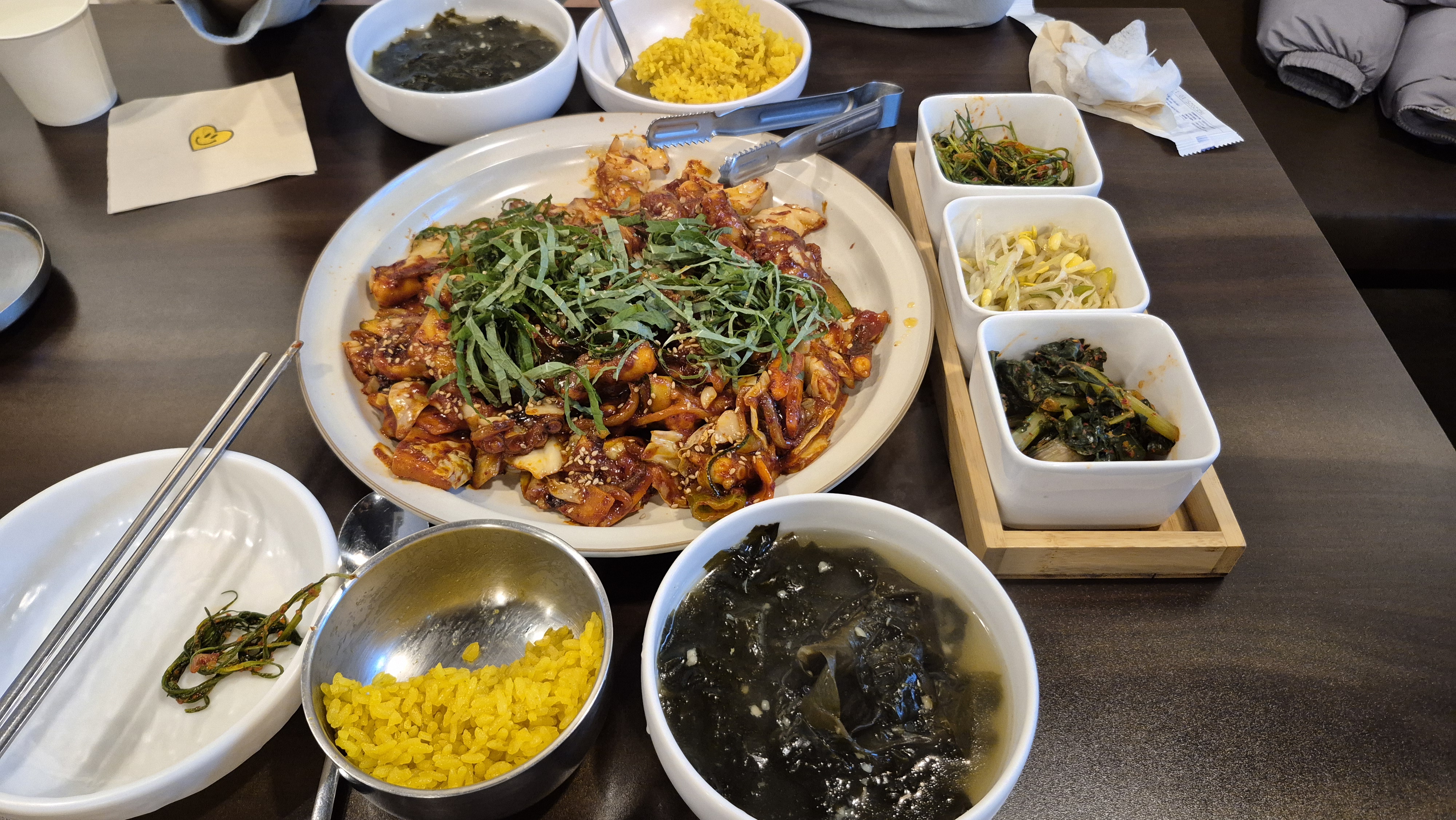 쌈밥의 영원한 친구, 제육볶음 역시 소복집의 자랑입니다. 고기가 질기지 않고 부드러우며, 살짝 불맛을 입혀 감칠맛을 극대화했습니다. 맵기만 한 자극적인 맛이 아니라 달짝지근함과 깊은 맛이 어우러져, 쌈장 없이 밥과 함께 먹어도 훌륭합니다. 낙지볶음을 주문하면 매콤한 양념에 쫄깃한 낙지의 식감까지 더해져 해산물을 좋아하는 분들의 취향까지 저격합니다.
