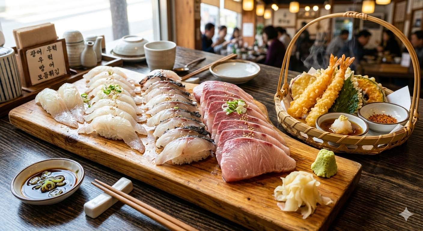 신도림역 인근에서 이 정도 가격에 이렇게 다양한 구성을 먹을 수 있는 곳은 드물어요. 특히 세트 메뉴는 '오늘의 추천 생선'이 포함되는 경우가 많아 항상 최상의 컨디션인 회를 맛볼 수 있다는 게 큰 매력이죠.